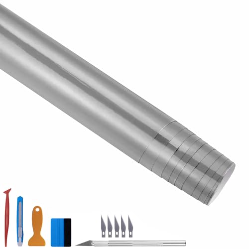 NewL Högglansig vinylfilm, självhäftande, luftutsläppsbubbla, lämplig för utomhusbruk (silver, 30 cm x 300 cm)