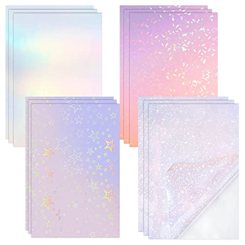Cosysparks Holografiskt klistermärkes papper, 12 st A4 holografisk laminatfilm holografisk transparent vinyl vattentät självhäftande holografisk vinylfilm för dekoration (4 stilar)