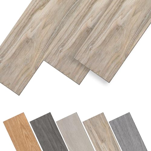LZQ PVC-golvbeläggning, vinylgolv, självhäftande, med träeffekt, 36 vinylplattor, 5,02 m² stora golvplattor, kakelgolv, slitstarkt, vattentätt, för vardagsrum, kök, tvättad ek