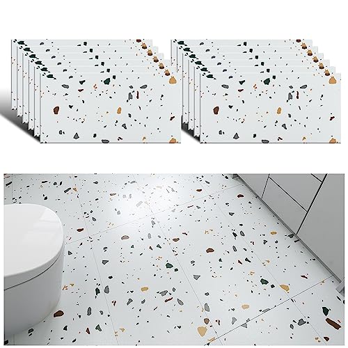 VEELIKE 60 cm x 30 cm, 12 stycken, kök, vinylgolv, självhäftande PVC, golvbeläggning, kakellook, marmorutseende, kakeldekor, golv, kök, oljeresistent, vattentät, vinylkakel, vardagsrum, badrum