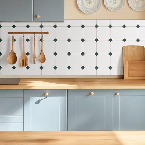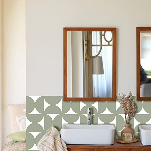 Alwayspon 12 st x 20 cm x 20 cm vinylgolv kakel klistermärke överföring, halkfria klibbig baksida kakel dekaler för kök badrum självhäftande skala av och klistra fast PVC fäst på kakel, salvia och vit