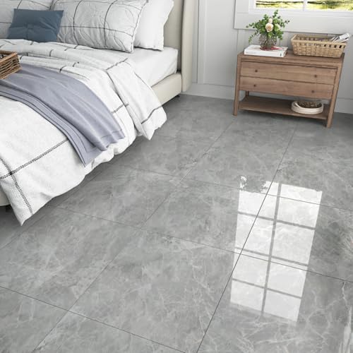 Fogmiea PVC-golvbeläggning självhäftande vinylgolv, kvadratisk vinyl, golvbeläggning, självhäftande, halkfri, vattentät, svårantändlig, 4 m²/44 kakel, grå marmor