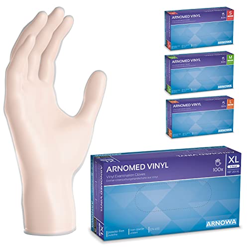 ARNOMED vinyl XL engångshandskar, 100 st/box, puderfria, engångshandskar, vinylhandskar finns i storlekarna S, M, L & XL
