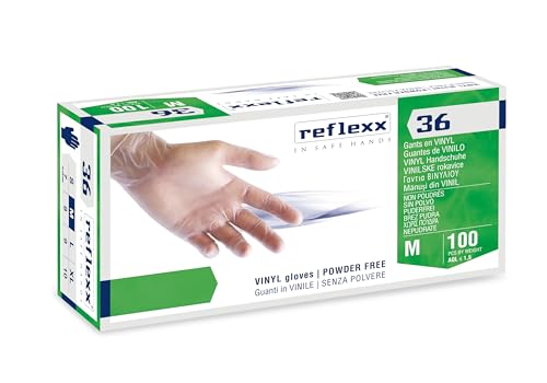 Reflexx R36, puderfria vinylhandskar., M, genomskinliga, 100