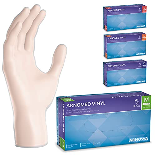 ARNOMED vinyl M engångshandskar, 100 st/box, puderfria, engångshandskar, vinylhandskar finns i storlekarna S, M, L & XL
