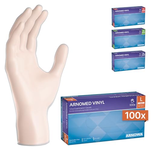 ARNOMED vinyl L engångshandskar, 100 st/box, puderfria, engångshandskar, vinylhandskar finns i storlekarna S, M, L & XL