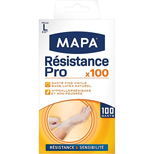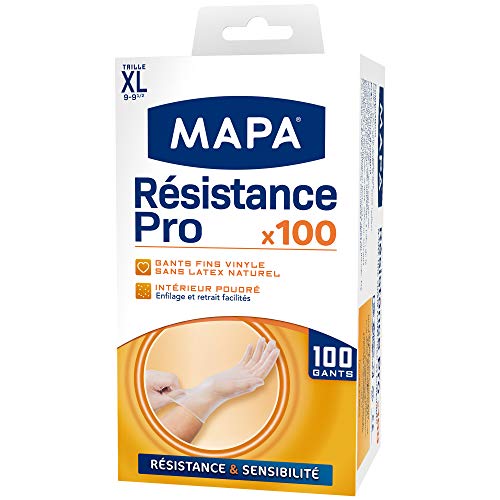 MAPA – Résistance Pro – ask med 100 fina vinylhandskar och puderad inredning – latexfri – storlek L.