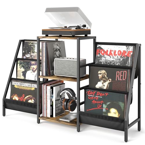 Skivspelarstativ med vinylförvaring, skivspelarbord med förvaring av vinylskivor upp till 280 album, Turnta ble stativ med skivhållare, vinylhylla, skivskåp för vinyl media stereo