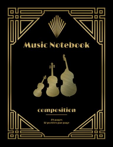 Cahier de Musique Noir - 48 Pages de Portées – Modèle Instruments à Cordes (Violon, Alto, Violoncelle, Contrebasse): Music Manuscript Book Black – 48 ... Edition (Violin, Viola, Cello, Double Bass)