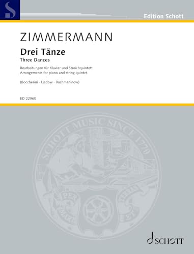 Three Dances: Arrangements (Volume II). 2 violins, viola, cello, double bass and piano. Partition et parties.