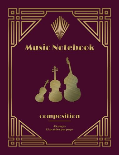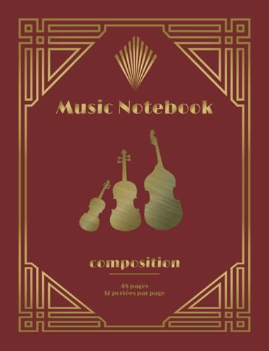 Cahier de Musique Bordeaux - 48 Pages de Portées – Modèle Instruments à Cordes (Violon, Alto, Violoncelle, Contrebasse): Music Manuscript Book ... Edition (Violin, Viola, Cello, Double Bass)
