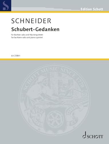 Schubert-Gedanken: Cycle based on lieder by Franz Schubert (1797-1828). baritone, violin, viola, cello, double bass, piano. Partition et parties.
