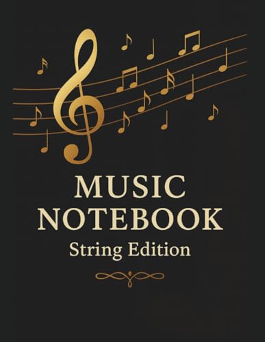 Blank Manuscript Notebook – String Edition: 12 Staff Lines per Page | 100 Pages | 8.5" x 11" | For Violin, Viola, Cello, and Bass | Elegant Black Cover for Students and Musicians