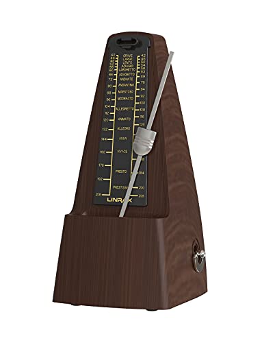 Linrax M2 Mekanisk Metronom för Piano Gitarr Bas Ukulele Trumma Fiol Violin Viola Cello Saxofon Trumpet och andra Musikinstrument, Exakt Tempo och Takt, Högt Ljud, Hög Precision, Träkorn