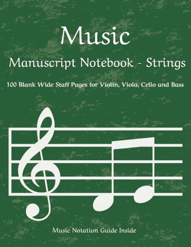 Music Manuscript Notebook – Strings: Blank Sheet Music Paper | For Violin, Viola, Cello and Double Bass | 8.5 x 11 Inches | 100 Blank Pages | 12-Staff Manuscript Paper |
