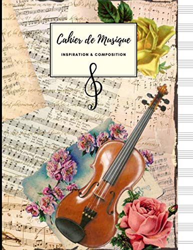Cahier de Musique INSPIRATION & COMPOSITION Grand Format | 100 Pages | Papier Blanc: Couverture Vintage – Partitions Roses Violon.