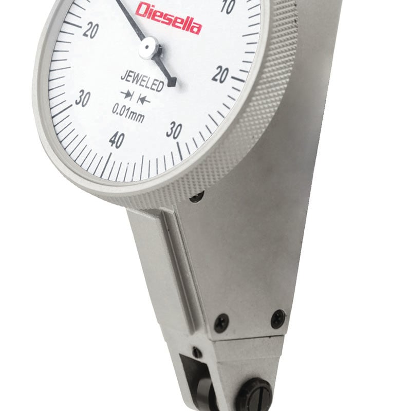 Vippindikator 0,8 x 0,01 mm med vinklat klocka och 16 mm vipparm