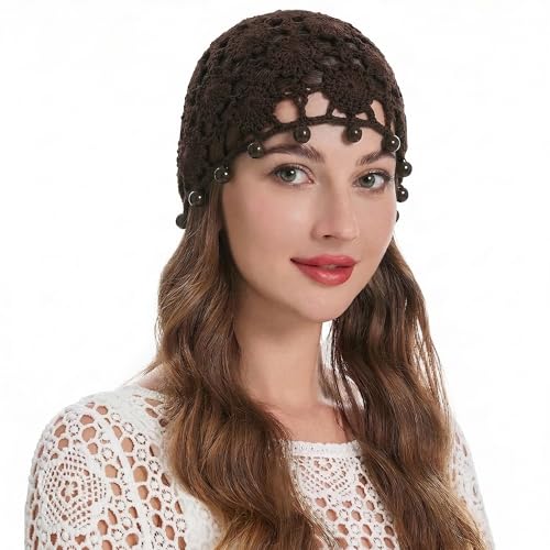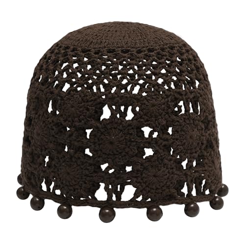ZLYC kvinnor bomull virkad skalle keps handgjord stickad utklipp blommig mössa hatt, Pärla glänsande brun, one size