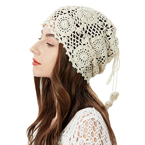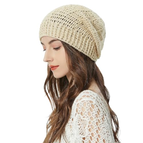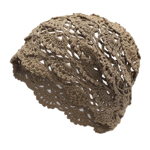 ZLYC Dam, bomull, virkad lös mössa, handgjord, stickad, sommar, skalle, stickad Beige, one size