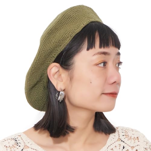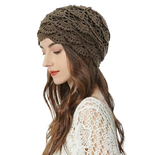 CHARM Stickade mössor för kvinnor och män, 100 % handgjord fransk mössa i virkad bomull för sommar och vinter, Khaki, one size