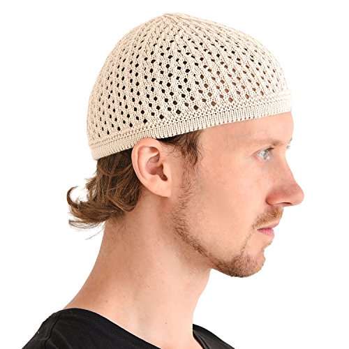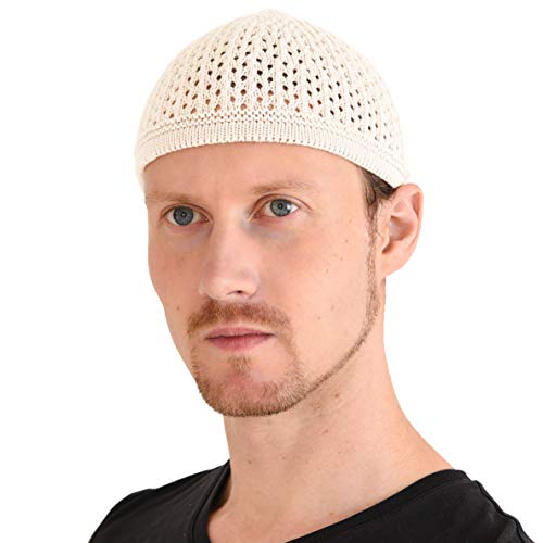 CHARM Stickad bomull skalle mössa Kufi islam bön hatt virkad mesh skalle mössa män huvudbonader för varje tid, Beige, En Storlek