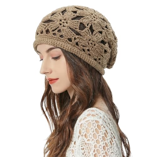 ZLYC Damer sommar stickade mössor handgjord virkad mössa slouch beanie mössa, virkad khaki, En Storlek