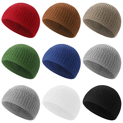 Funtery 9 delar stickade Kufi-mössor dödskallemössor för män kvinnor muslimskt hjälmfoder andningsbar ramadan virkad mössa, Traditionella färger, M