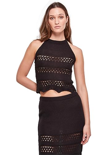 Urban Classics Dam kort virkad stickad nackhållare topp linne/cami-skjorta, svart, L