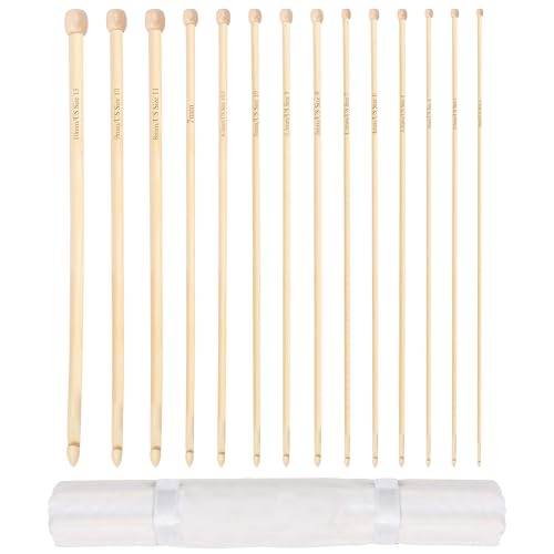 Curtzy Virknålar i Afghaniskansk Tunisisk Bambu (14 Storlekar) – Varje Virknål är 35 cm – Storlekar 2 mm till 10 mm – Tunisiska Virknålar för Virkningsprojekt – Nybörjare till Experter