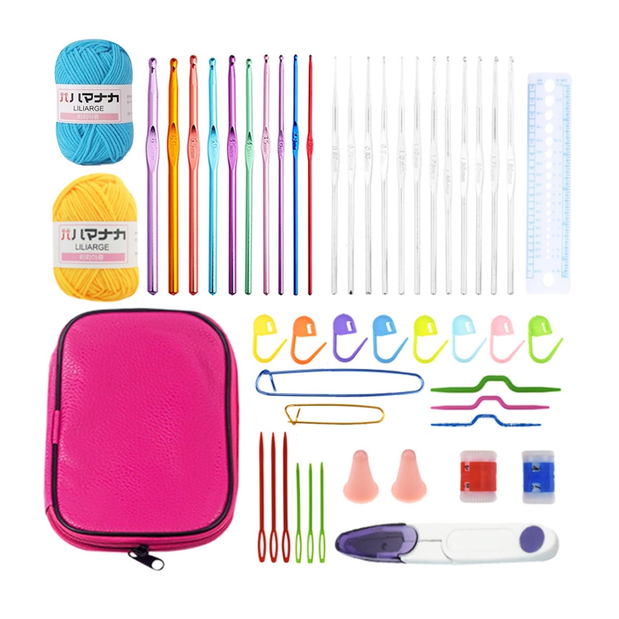 Virknålar kit med fodral virkade krokar set sticknålar sömnadsverktyg komplett set stickad tjocklek sax stygnhållare vävd garn set