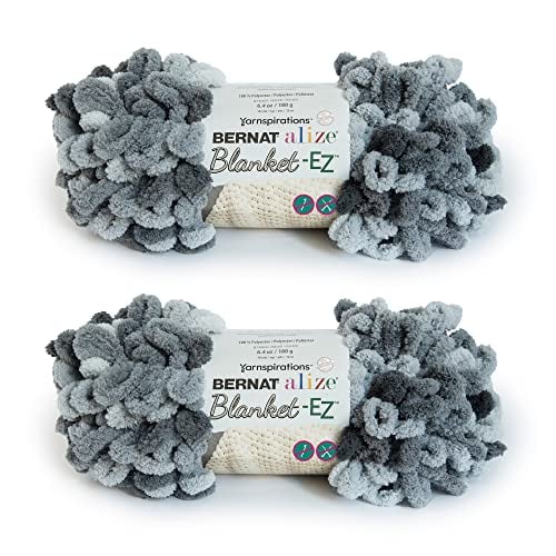 Bernat Alize Blanket-EZ supermjukt loopat garn för nybörjare, handstickning, inga stickor eller virknålar behövs, grå (Slate Grays), 2-pack