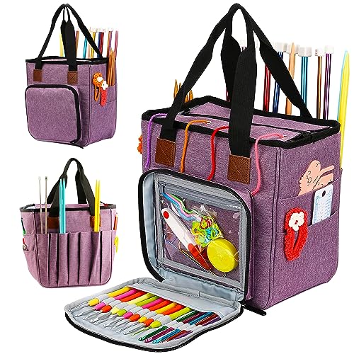 Luxja Handgjord väska virkning, garn förvaring, väska stickning för oavslutade projekt, virknålar och andra tillbehör (inget tillbehör ingår), lila