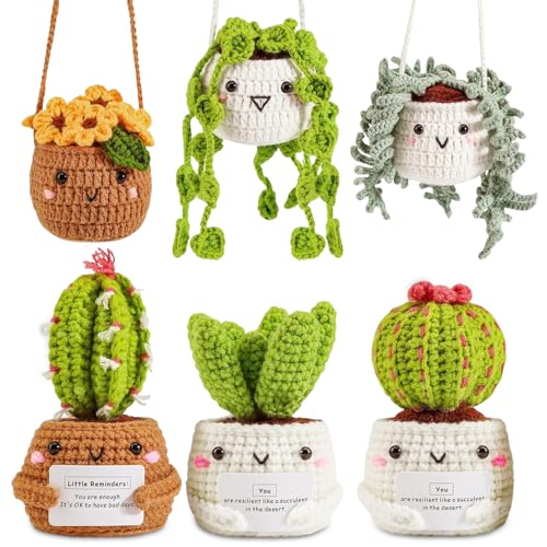 WDKXCN Virkset för nybörjare, 6 stycken kaktusvirkade för nybörjare, stickning för nybörjare, set med virknålar, garn, fyllning, handsynål, stickmarkörer, instruktioner