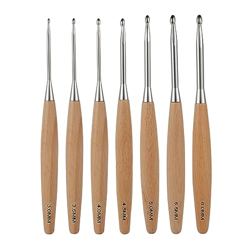 7st Virknålar Trä Set, 3,0mm-6,0mm Ergonomiska Handtag för Nybörjare - Virkning och Stickning Tillbehör