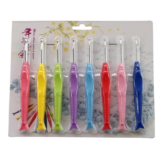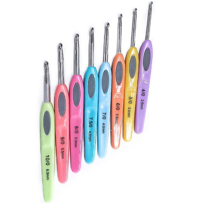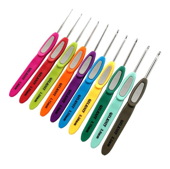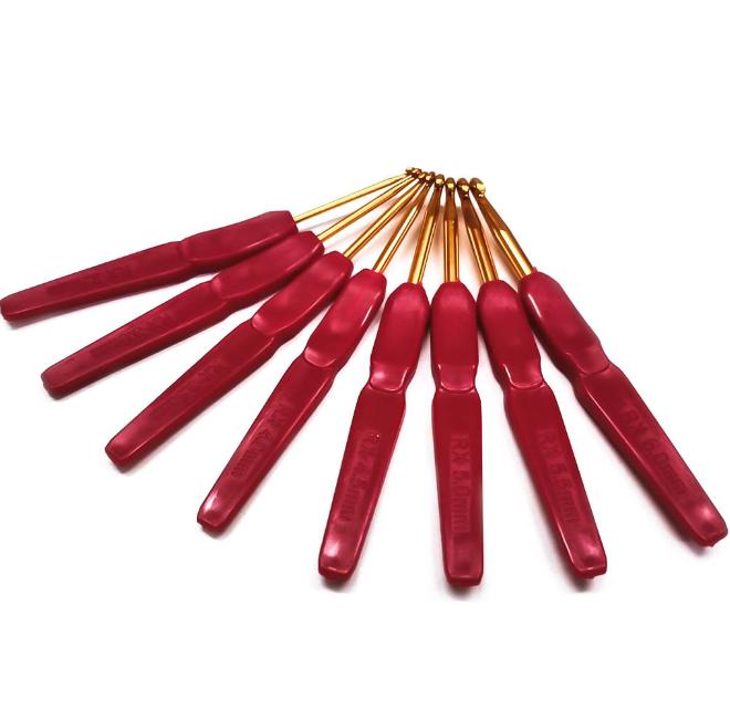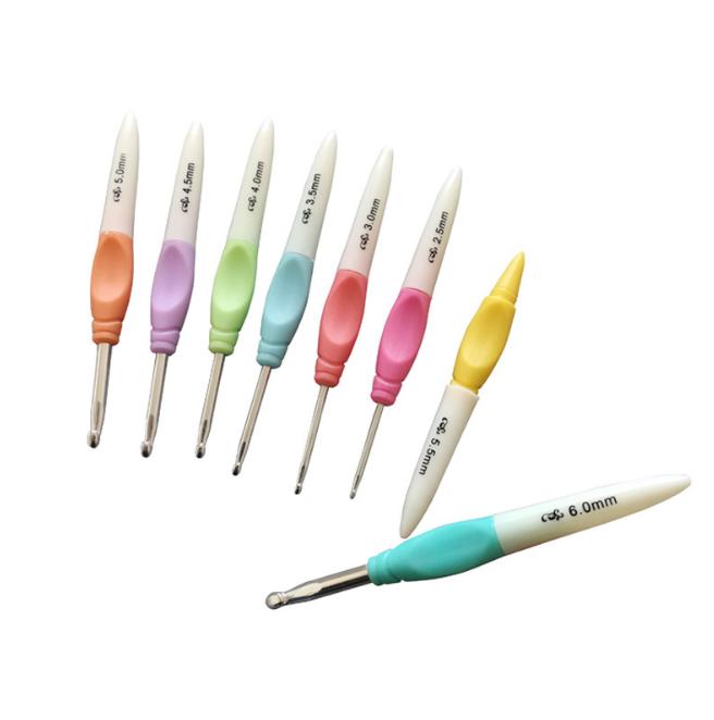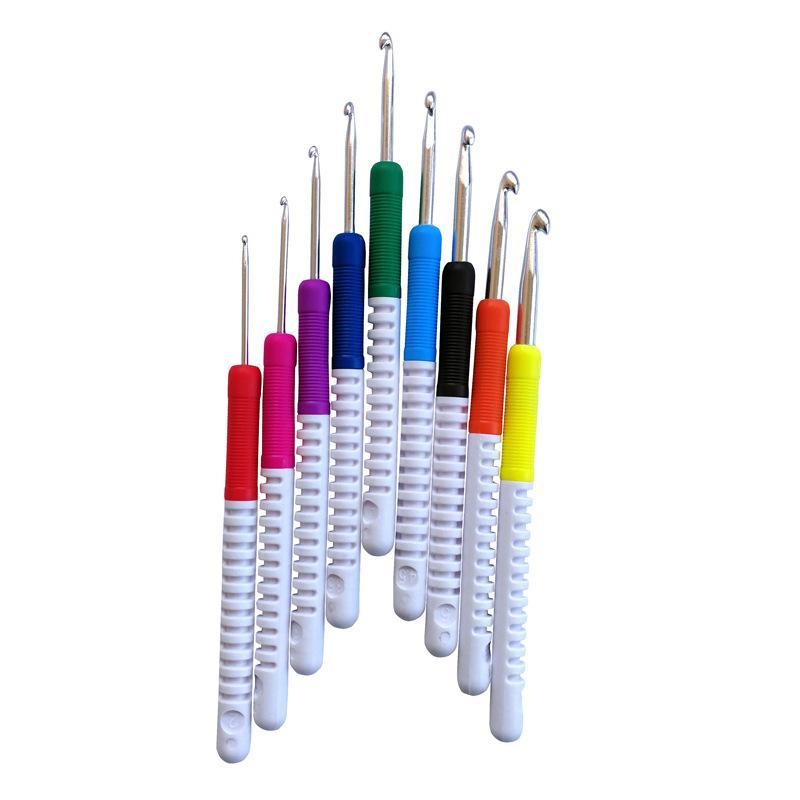 9 St Virknålar Set Stickning Ergonomisk Virknål Set Virknålsset Släta Nålar Verktyg Ergonomiska Plasthandtag Aluminiumkrokar (PU-förpackning)