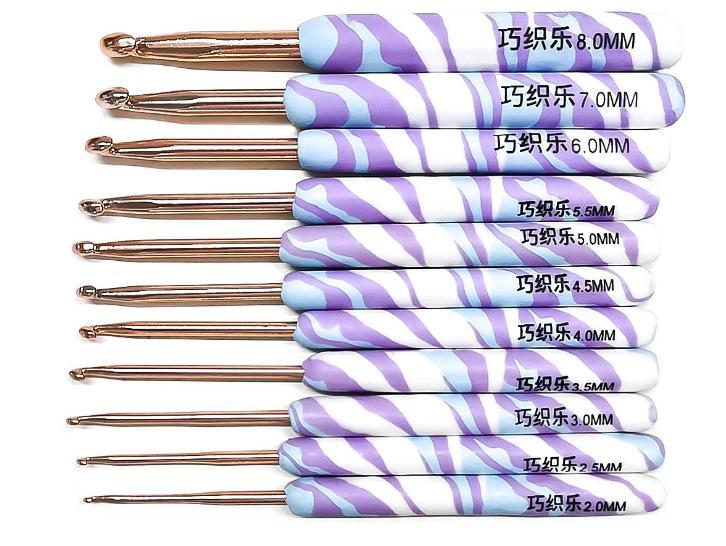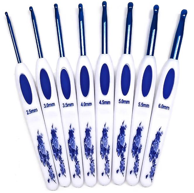 N141 - Set med 8 st. snygga ergonomiska virknålar Blå / Vit