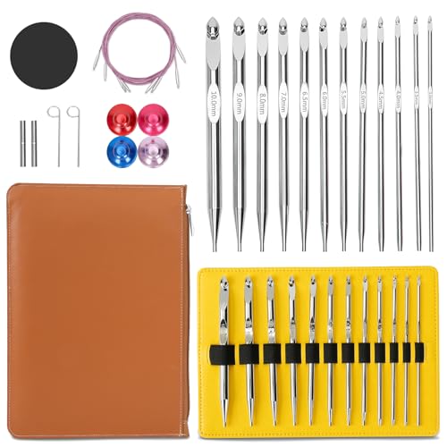 23 stycken tunisiska virknålar,11 stycken tunisiska virknålar av aluminium och 12 stycken tunisiska virknålar med rep,set med afghansk virknålar för nybörjare vuxna proffs