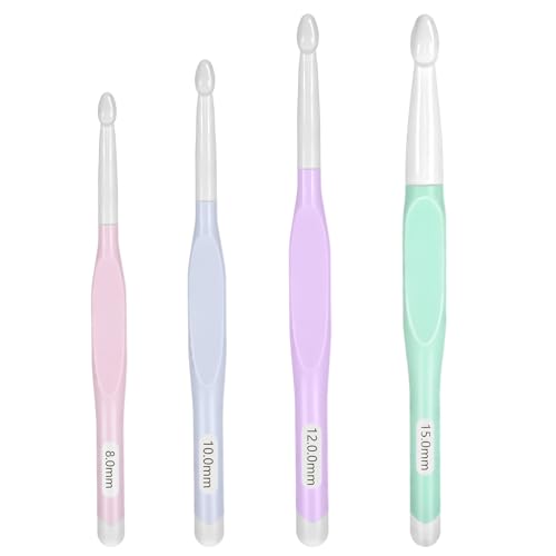 Nogeqi 4 stycken stora virknålar set hög kvalitet, virknål storlekar 8 mm 10 mm 12 mm 15 mm plast, hacknålar ergonomiska med långt handtag för nybörjare färgglad virkad krok för pullover halsduk matta