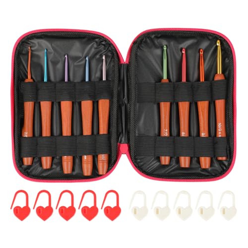 Esteopt 16 stycken virknålar set aluminium syverktyg bärbar gör-det-själv stickverktyg lätt virkning stickade nålar markerare för symaskingarn alla mönster och ulltyper filtar babykläder