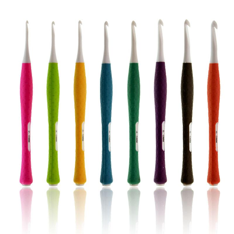 Andibro Virknål Set, 8 Delar Ergonomiska Halkfria Inline Virknålar för Nybörjare, Mjukt Handtag för Mössor Handskar Halsdukar Stickning Gör-Det-Själv 2,5-6 mm (C-J)