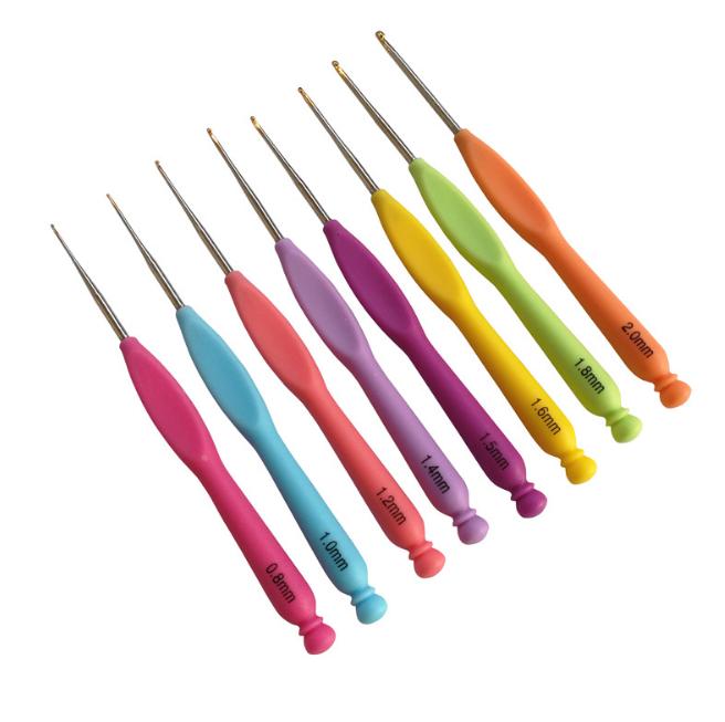 16 st virknålar set plasthandtag, ultrafin virkningsnål i rostfritt stål för virkning stickning snörning gör-det-själv syverktyg