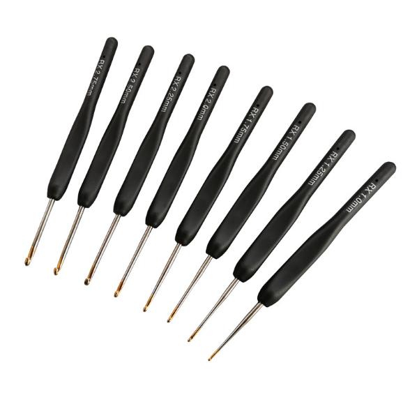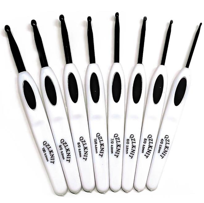 N140 - Set med 8 st. snygga ergonomiska virknålar Svart / Vit