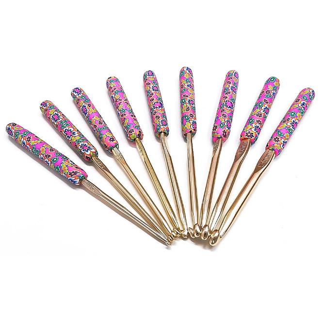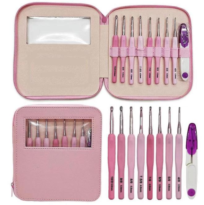 N030 - Set med 8 st. ergonomiska virknålar i snyggt rosa fodral
