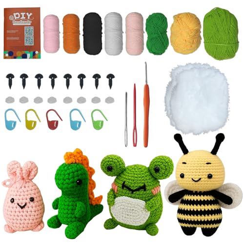 HahaGo virkset för nybörjare, virknålset med videokurs, virkade set djur med virknålar garn och säkerhetsögon för virkade djur, virkset för nybörjare, virkpaket för gör-det-själv pysselkonst gåva