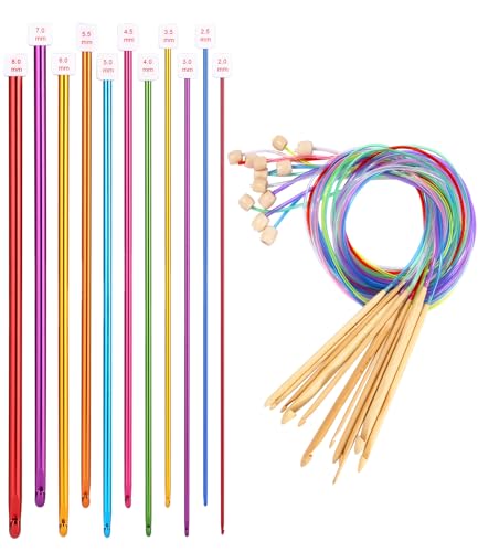 Aeelike 23 stycken tunisiska virknålar, 3,0–10 mm bambu tunisiska virknålar set med rep, 2,0–8,0 mm metall tunisiskt afghanskt virknålset, för filtar, halsdukar, ärmar och andra virkade projekt