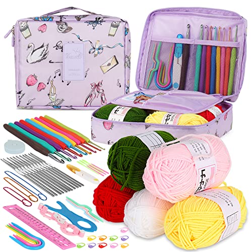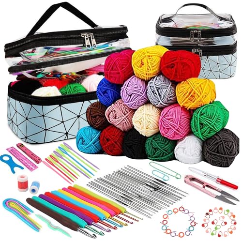 Relland virkset för nybörjare 105 stycken virknålar, stickning för nybörjare paket virkade nålar set, med ull och sticktillbehör