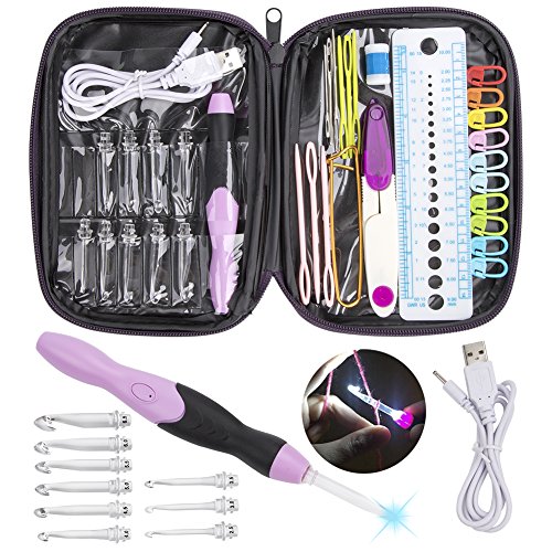 Yosoo Health Gear USB Uppladdningsbar LED Virknålar Set, 9 i 1 Utbytbara Huvuden Med Ljus, 2,5-6,5 MM Stickverktyg Med Tillbehör Och Utbytbara Spetsar