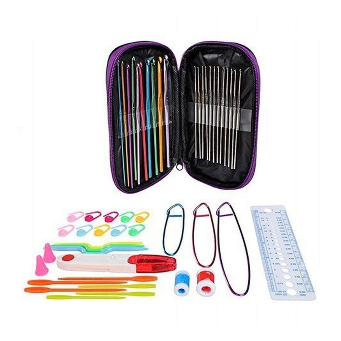 Virknålar kit med fodral virkade krokar set sticknålar sömnadsverktyg komplett set stickad tjocklek sax stygnhållare vävd garn set