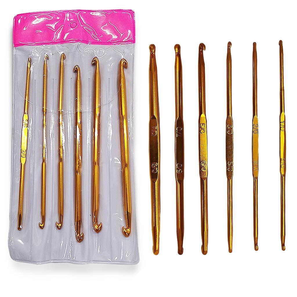 N125 - Set med 6 st. guldfärgade virknålar i aluminium