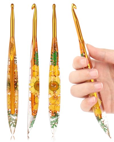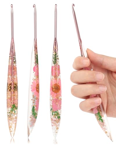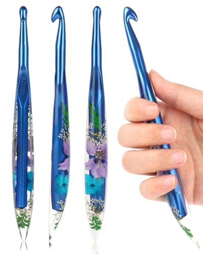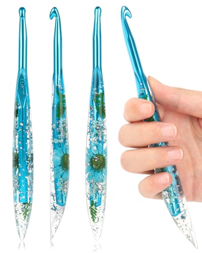 Coopay 3,5 mm virkade krokar, glittrande blommig virkkrok i harts, ergonomiska virkkrokar för artritiska händer, avsmalnande metallkrok för handgjord virkning, för nybörjare (3,5 mm)